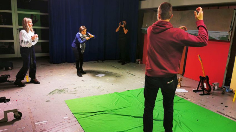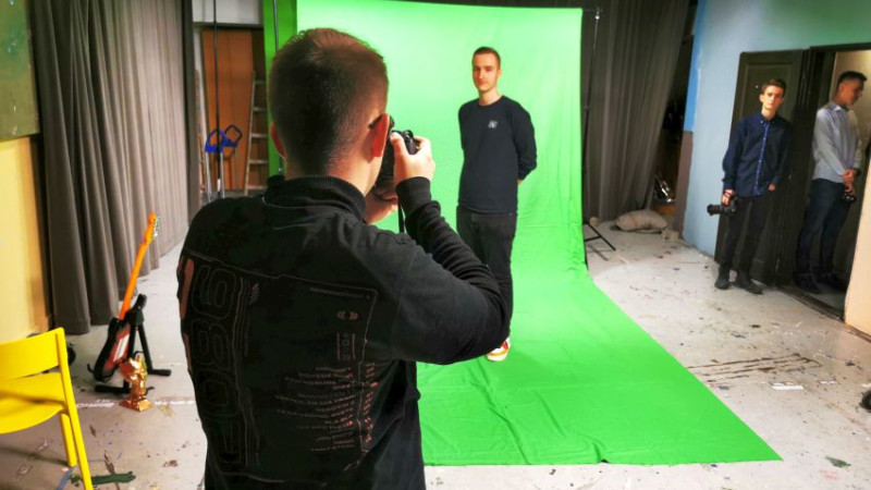 Po ukončení fotografovania všetkých účastníkov po presune do učebne VFX nafotografované zábery všetci uchádzači vkladajú do svojich laptopov súčasne.